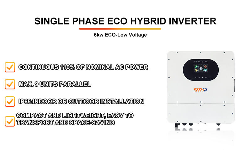WTHD Single Phase IP65 Hybrid Solar Inverter 6KW yana ba da kama’irin mai zurfi, amfani mai zurfi na hanyar kuɗi, ammauni mai zurfi, da alamar mai sauƙi a wani abubuwa. Yana da kyau ga wani daya ne soye soye don gina ko kara ƙarin hanyar kuɗin suryarku