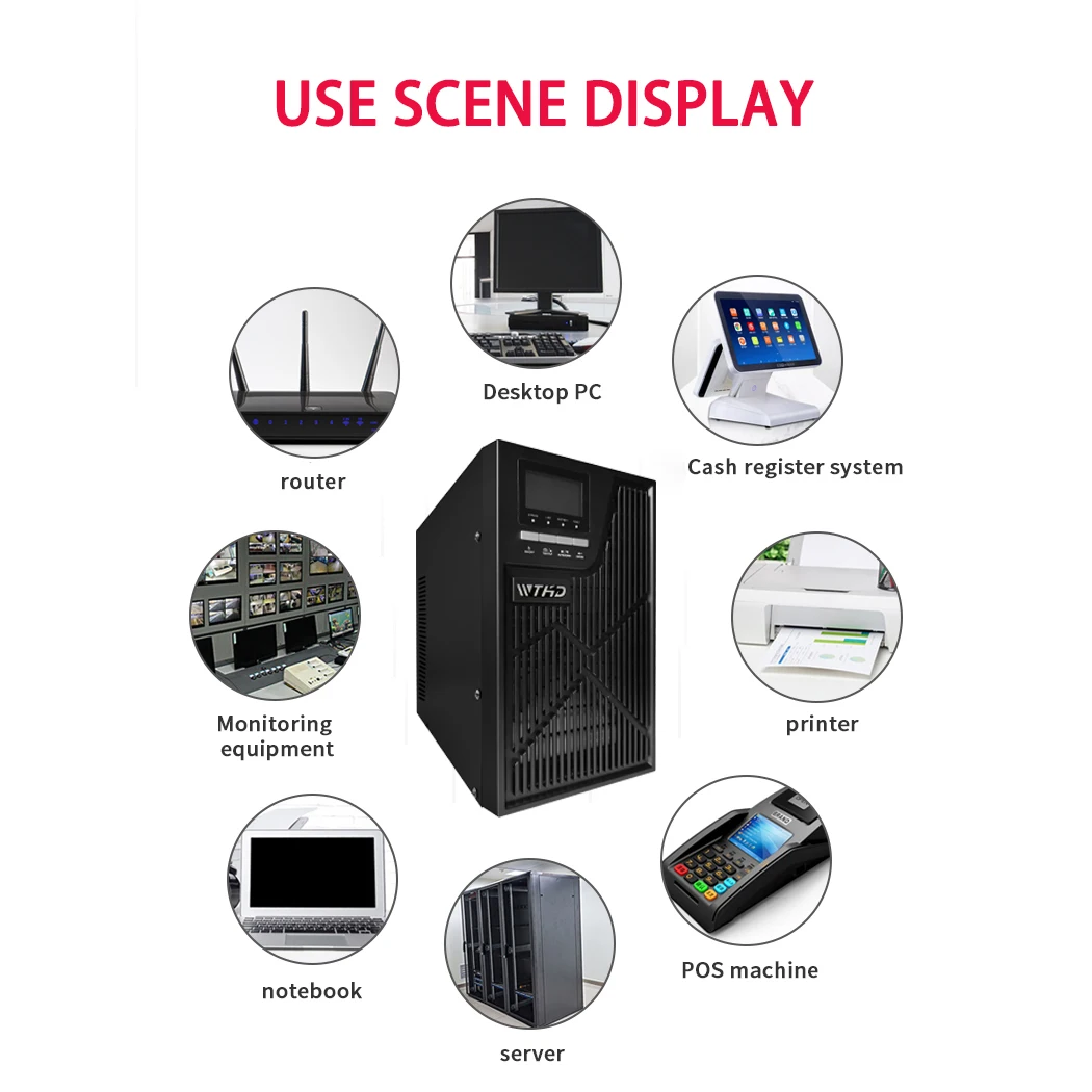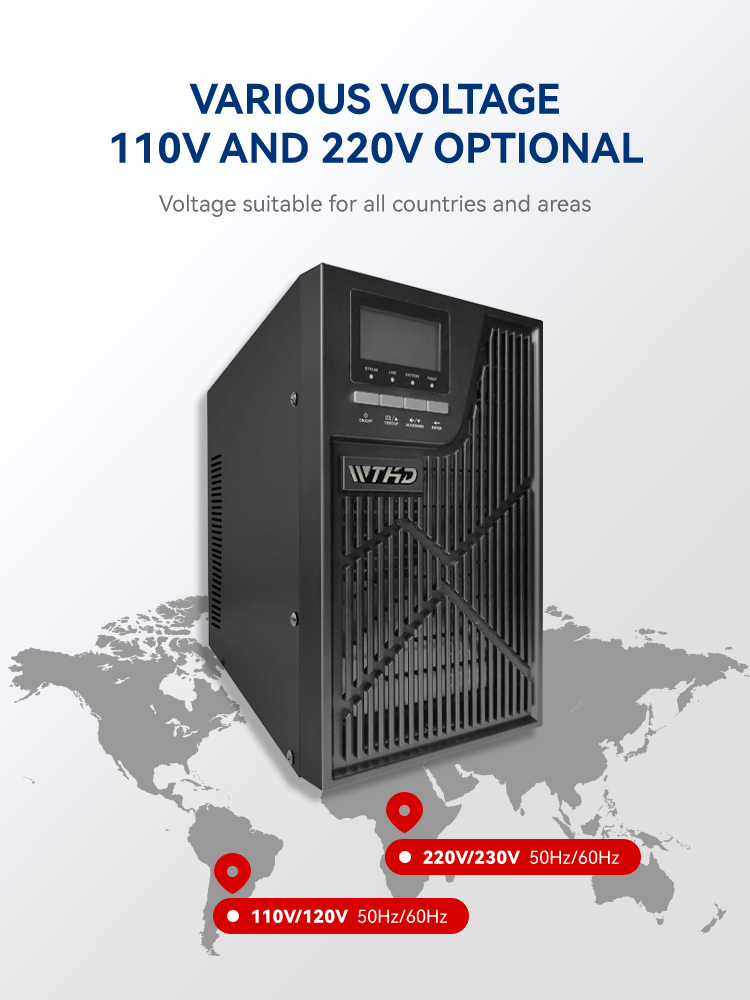 WTHD Onlayn Bir Fazali UPS kompyuterlaringiz, tarmoq uskunalari va nozik elektronika qurilmalarini elektr uzilishlari yoki kuchlanish tebranishlari paytida silliq ishlashini ta'minlovchi ishonchli va samarali quvvat zaxirasini saqlash yechimidir. 1000VA (1KVA), 2000VA (2KVA), 3000VA (3KVA), 4000VA (4KVA), 5000VA (5KVA), 6000VA (6KVA) hamda 10000VA (10KVA) gacha bo'lgan turli sig'imlarda mavjud bo'lib, uskuna 110V hamda 220V tizimlarini qo'llab-quvvatlaydi va turli sohalarda hamda joylarda keng qo'llanish imkonini beradi