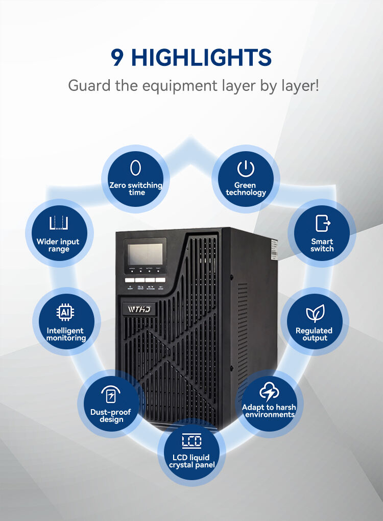 WTHD UPS ning eng muhim xususiyatlaridan biri — bu onlayn ikki bosqichli konvertatsiya modeli ekanligi, ya'ni u doim toza va barqaror quvvat ta'minotini beradi. Oflayn yoki line-interaktiv UPS tizimlaridan farqli o'laroq, onlayn UPS kiruvchi o'zgaruvchan tokni doimiy tokka, so'ngra qaytadan o'zgaruvchan tokka aylantiradi. Bu jarayon kuchlanish tullarini, impulslarni va pasayishlarni bartaraf etadi hamda uskunangizga uzluksiz va sifatli elektr ta'minoti yetkazilishini ta'minlaydi. Bu kompyuterlar, serverlar va tibbiy uskunalar kabi barqaror elektr energiyasiga ehtiyoj sezadigan nozik qurilmalar uchun xavfsiz va samarali foydalanish jihatidan ayniqsa muhim.